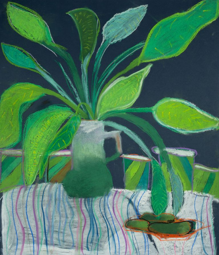 Druhým dílem, které jsme na dražbě získali, je obraz Diefenbachie malovaný teprve devítiletou Julií Jiráskovou. I přes nízký věk autorky působí dílo vyzrále, citlivě a přirozeně. Práce se suchým pastelem dodává obrazu jemnost i živost a krásně zapadá do myšlenky celé dražby – podpory talentu, růstu a naděje.